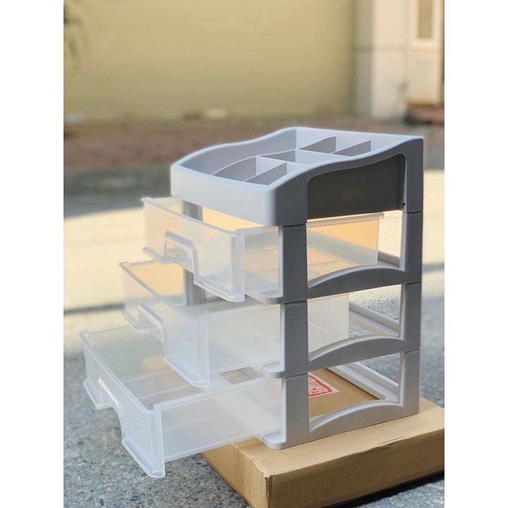 Ngoài ra bạn có thể dùng kệ tủ để đựng dụng cụ vật dụng nhỏ hay trang sức gọn gàng, sạch sẽ. Đặc biệt với thiết kế nhựa trong suốt sẽ giúp cho bạn tìm các vật dụng dễ dàng và nhanh chóng.