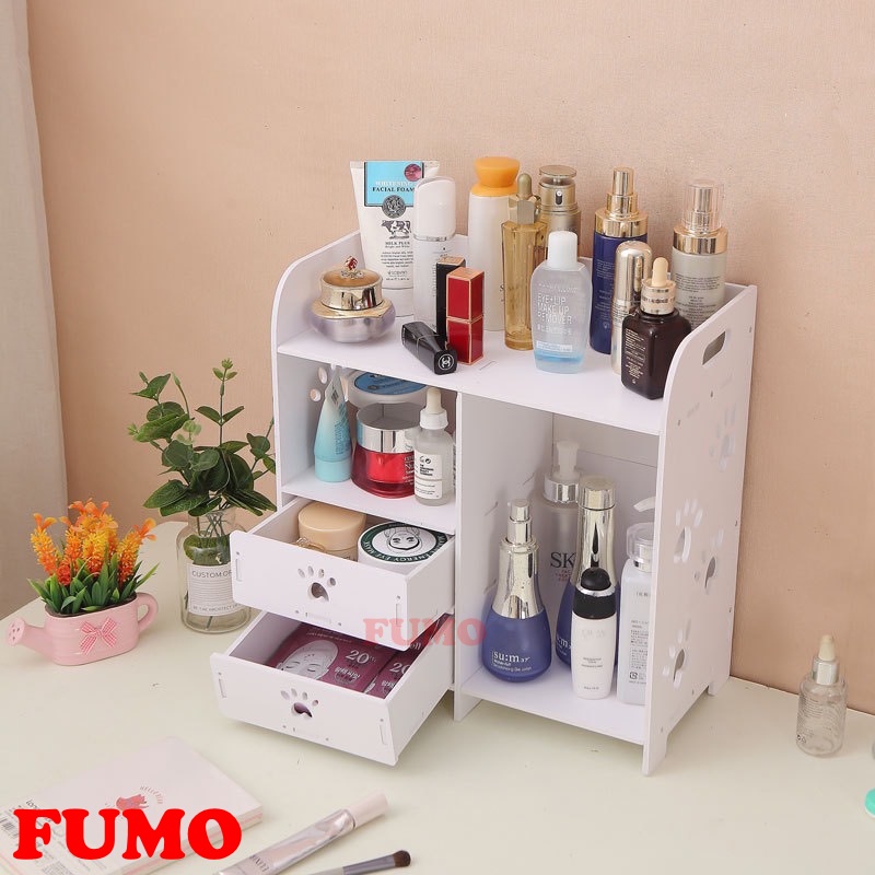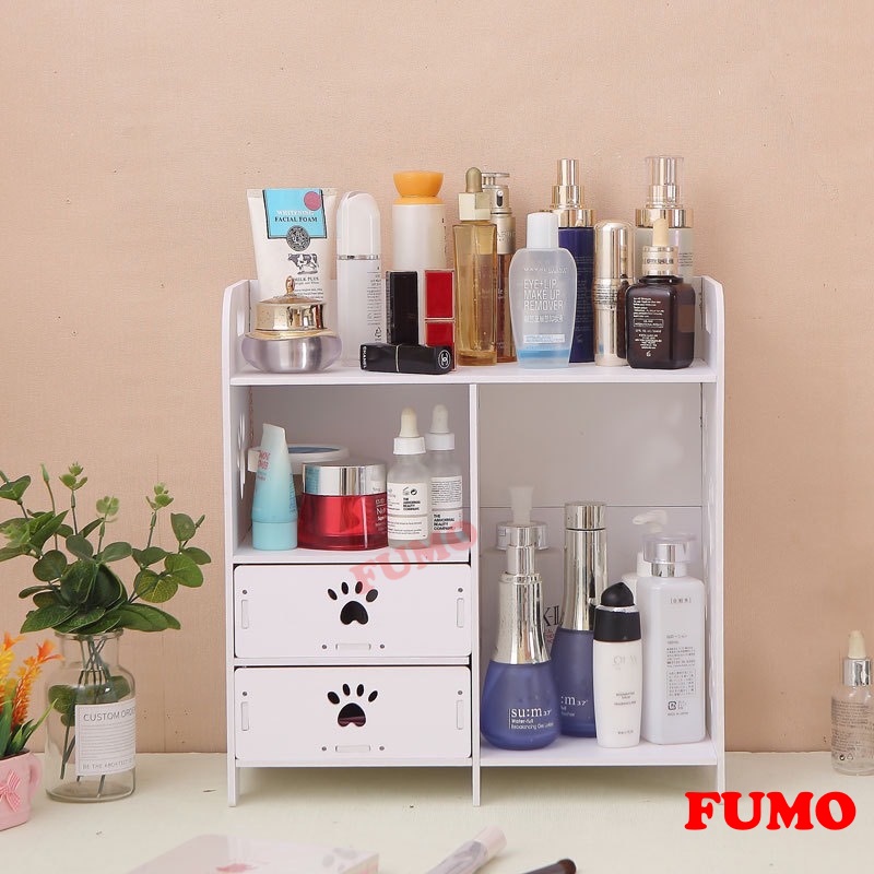 Kệ đựng mỹ phẩm chân chó FUMO tủ đựng đồ trang điểm 2 ngăn kéo KMP09🌸 Kệ mỹ phẩm chân chó FUMO vẫn luôn là lựa chọn thông dụng của mọi người do có những ưu điểm: