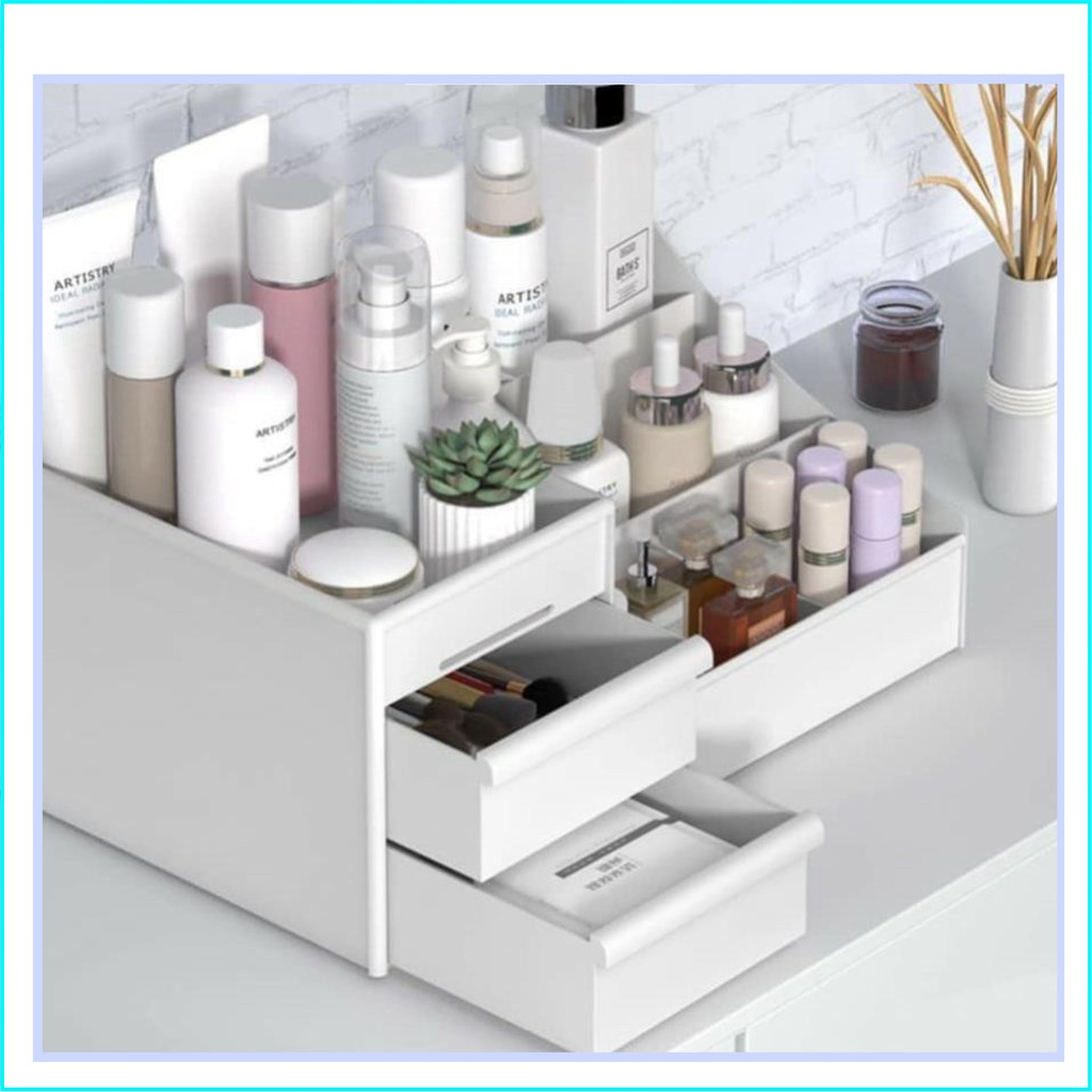 HÓA ĐƠN 50K freeshipMỹ phẩm, đồ trang điểm là những vật dụng cần thiết của phái đẹp nhưng cất giữ các vật ấy lẫn chung với đồ dùng khác sẽ khiến cho đồ đạc của bạn bị hư hỏng, mất đi form dáng ban đầu, ảnh hưởng đến “công cuộc” làm đẹp của chị em. Vì thế chúng tôi giới thiệu đến bạn Kệ Để Đồ Trang Điểm, vật dụng cá nhân cho bạn thoải mái để đồ mà không sợ đồ đạc bị va chạm, trầy xước.