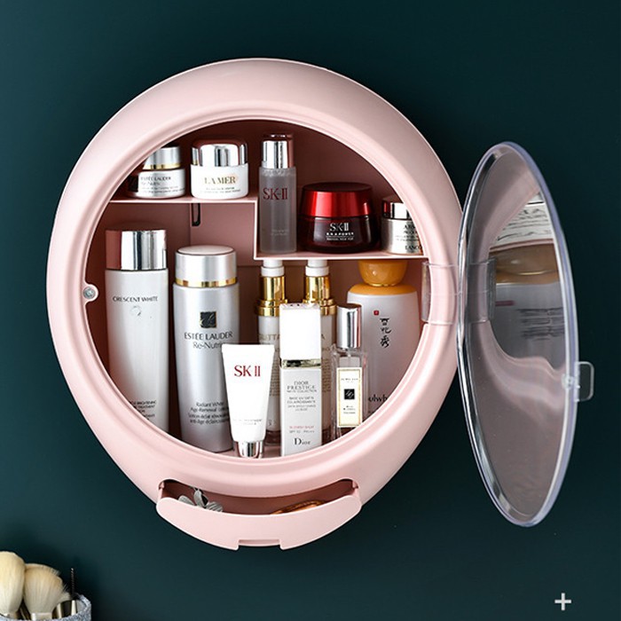 Tên sản phẩm: Kệ Đựng Mỹ Phẩm Dán Tường Chịu Lực TốtChất liệu: Nhựa PP, có nắp đậy chống thấm nước