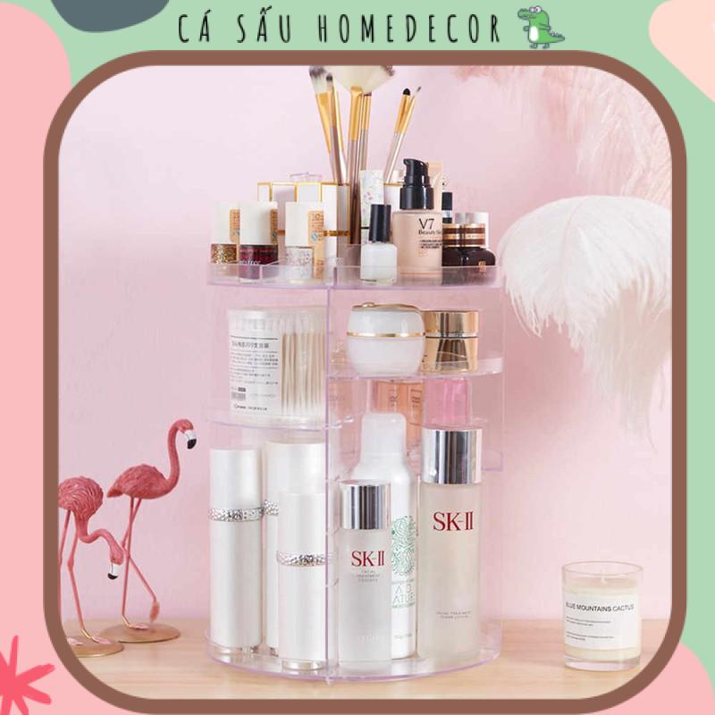 Kệ Đựng Mỹ Phẩm Để Bàn Xoay 360 Độ Hình Trụ Tròn Loại To Trong Suốt