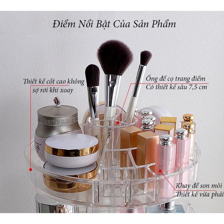 - Có thể xoay 360 độ tiện lời khi cần tìm mỹ phẩm