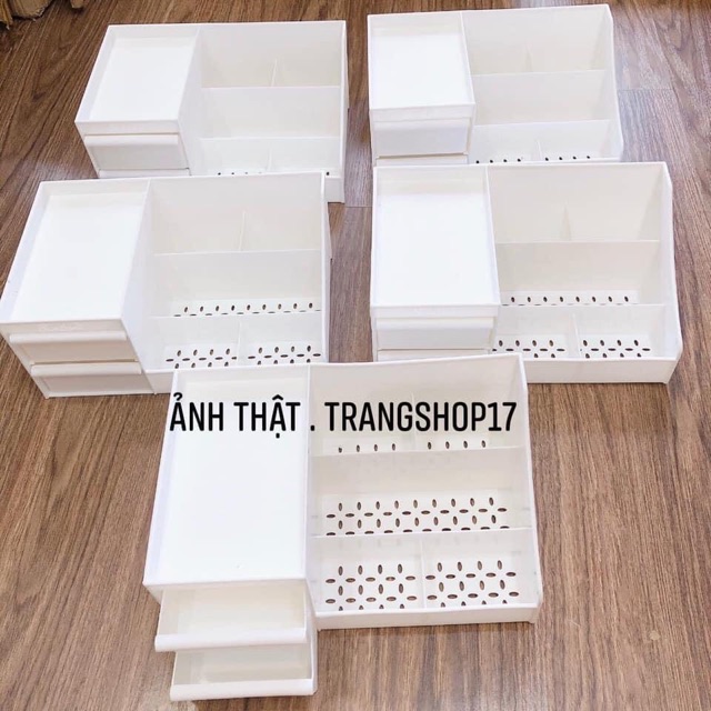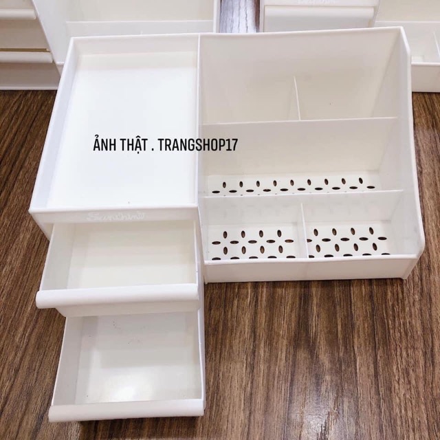 Mua cho bản thân nên e gom 1 lần cho chị em có nhu cầu mua cùng luôn ah. Thường ngày để mỹ phẩm lung tung ko quy củ nên tìm cứ loạn xạ cả ra, chị em cứ bỏ hết trên kệ này nha. Mọi người muốn làm đẹp bàn trang điểm của mình thì cũng nên sắm 1 em lắm ạ