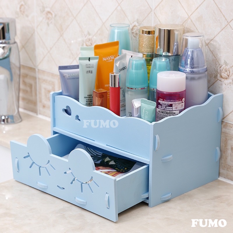 Kệ đựng mỹ phẩm mini gỗ nhựa cao cấp 2 tầng 1 ngăn kéo mắt mèo FUMO SP006