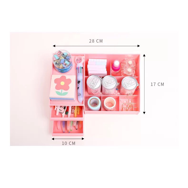 ✅ Có khay đựng đồ chuyên dụng, được trang bị với các ô, ngăn phù hợp cho bạn đựng các thỏi son, phấn, kem tẩy trang, đồ trang điểm, đồ văn phòng phẩm, đồ dùng học tập .....