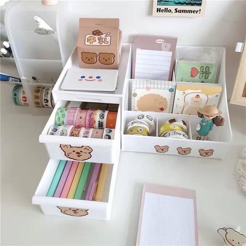 Kệ đựng mỹ phẩm nhựa để bàn Sumi, khay để đồ decor bàn học nhiều ngăn chắc chắn