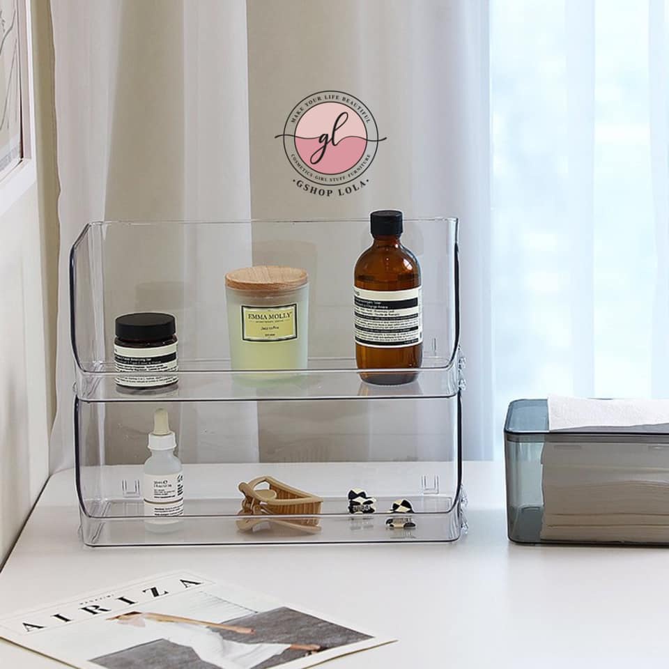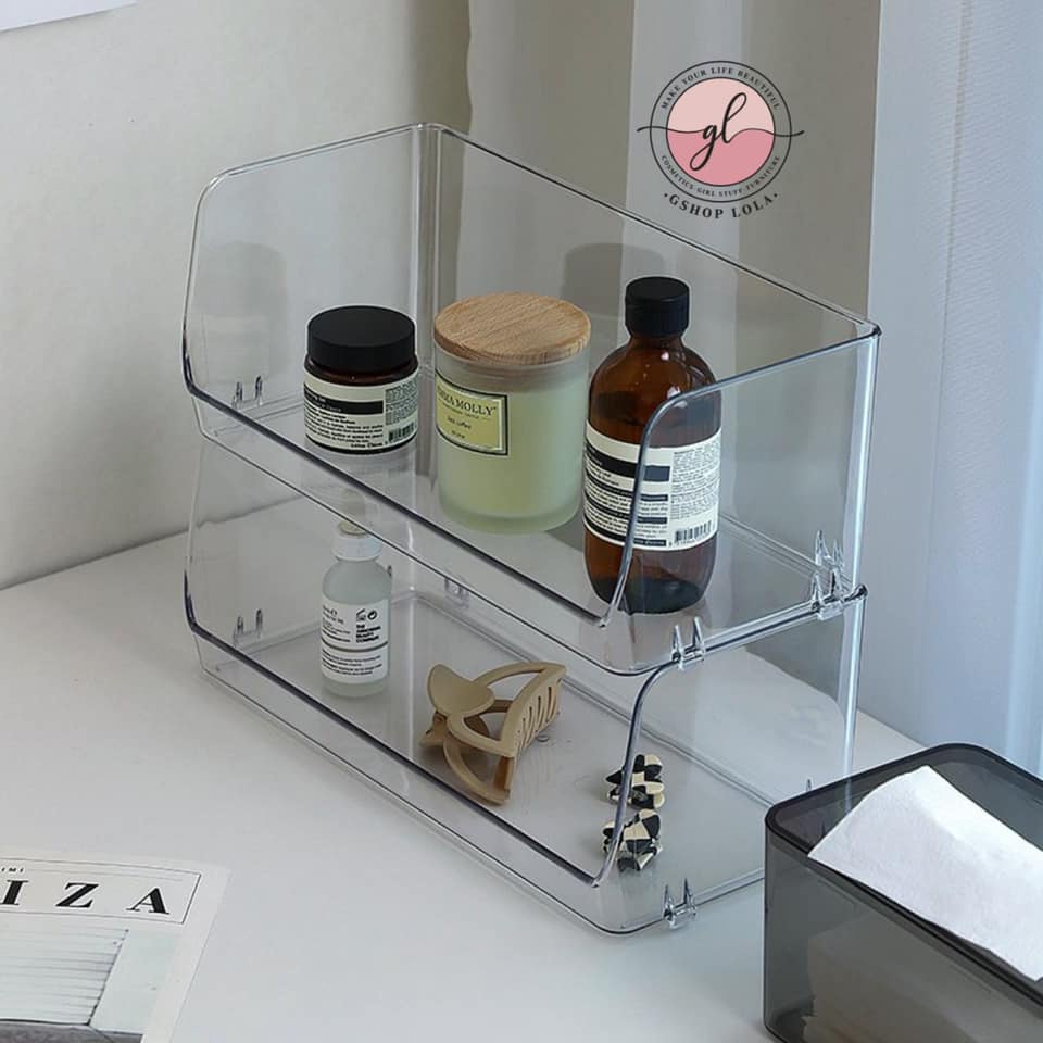 Nhà cửa & Đời sống > Đồ dùng phòng tắm > Kệ để đồ phòng tắm || Kệ đựng mỹ phẩm, nước hoa, đồ skincare nhựa Acrylic sức chứa khủng, xếp chồng thoải mái để nhà tắmCòn hàng