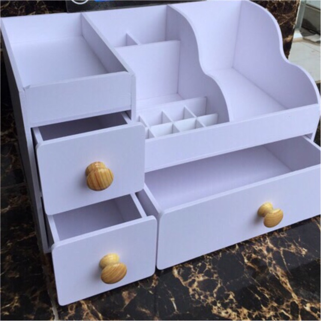 Kệ Đựng Mỹ Phẩm Size 35 trắng núm gỗ