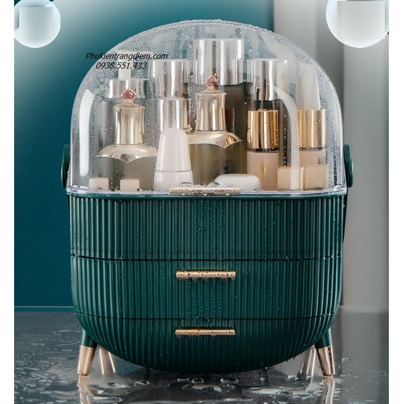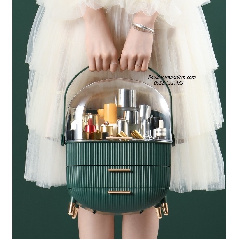 Kệ Đựng Mỹ Phẩm - Son Môi Có Nắp Xách Tay 2 Ngăn Kéo