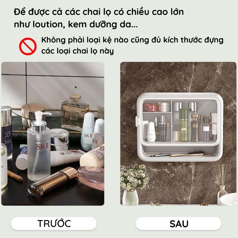 - KỆ ĐỰNG MỸ PHẨM được thiết kế kín, chống bám bụi bám nước, có thể vệ sinh dễ dàng. Kệ thiết kế ngăn có thể đựng đồ trang sức mỗi khi tắm hoặc vệ sinh.