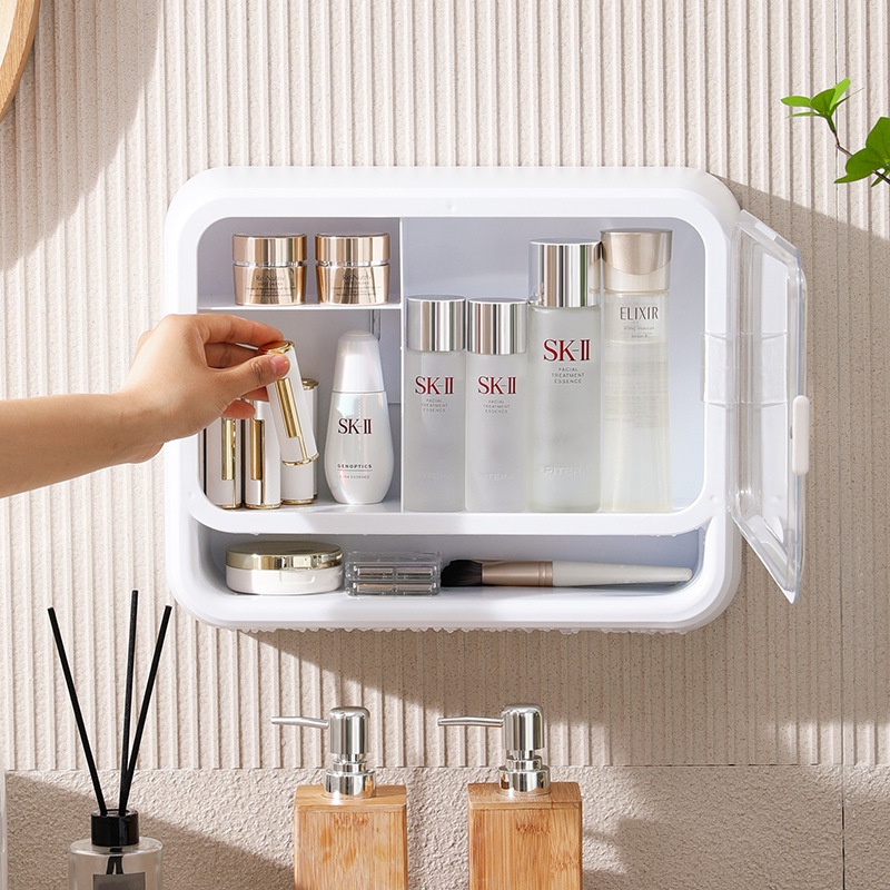 - Hộp đựng mỹ phẩm được trang bị thêm cửa hút nam châm, tự động đóng khi không sử dụng