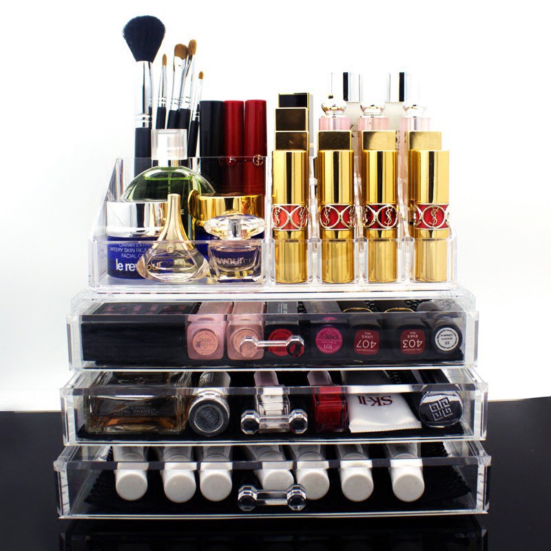 Kệ mica đựng đồ trang điểm, trang sức cao cấp là sản phẩm cần thiết giúp bạn sắp xếp đồ dùng cá nhân một cách ngăn nắp, gọn gàng.