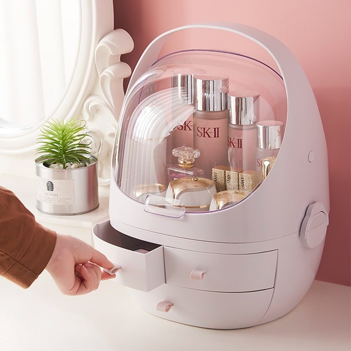 Kệ đựng mỹ phẩm và trang sức có ngăn kéo – Tủ đựng mỹ phẩm đa năng có nắp và quai xách