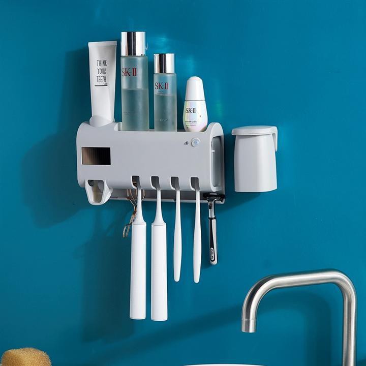 Kệ Đựng Nhà Tắm Đựng Bàn Chải Thông Minh Lấy Kem Đánh Răng Tự Động Kèm 2 Cốc Nam Châm Cao Cấp (Có Uv Diệt Khuẩn)Ưu Điểm: