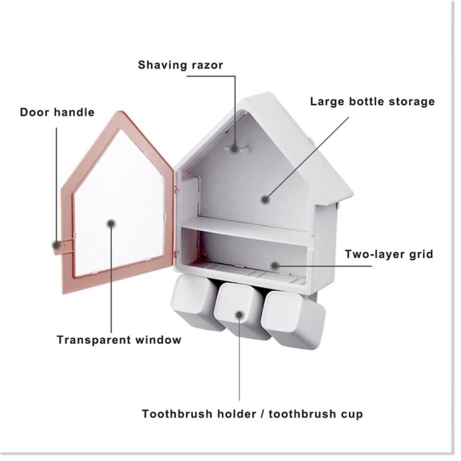 🌈 Nhiều công dụng: ngăn lớn đựng được kem đánh răng, mỹ phẩm, có khấc nhỏ để treo dao cạo râu, phía dưới hộp có giá ú ply và treo bàn chải đanh răng