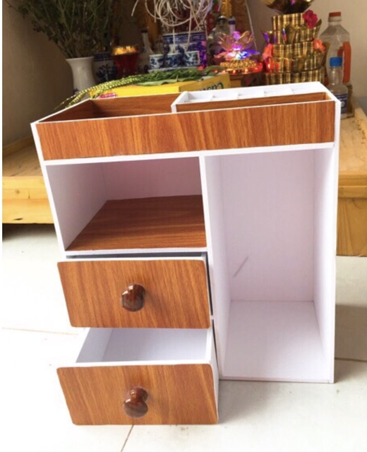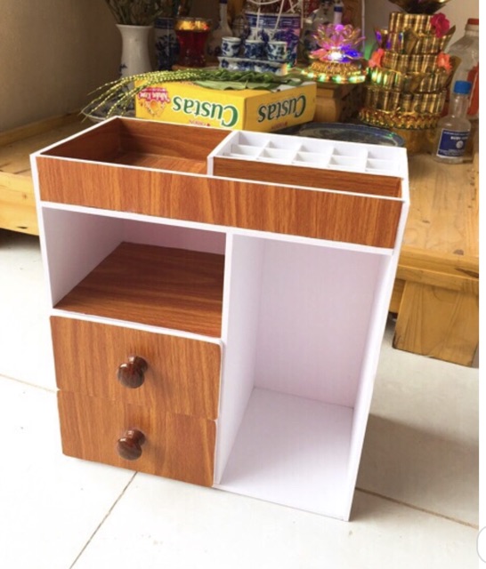 Nhà cửa & Đời sống > Sắp xếp nhà cửa > Kệ sách để bàn || Kệ Đựng sách - mỹ phẩm 2 ngăn kéo màu gỗ núm gỗCòn hàng