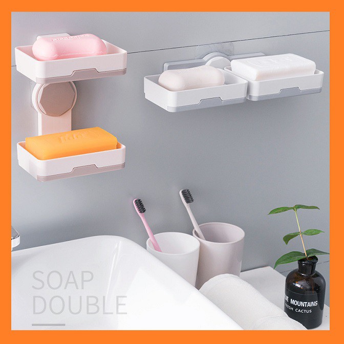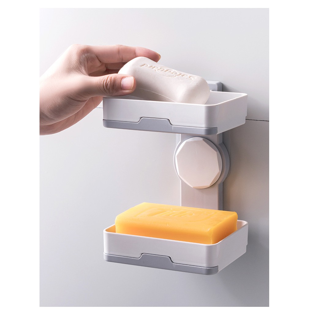 Giới thiệu Kệ đựng xà bông 2 tầng dán tường - kệ nhựa xoay đựng xà phòng