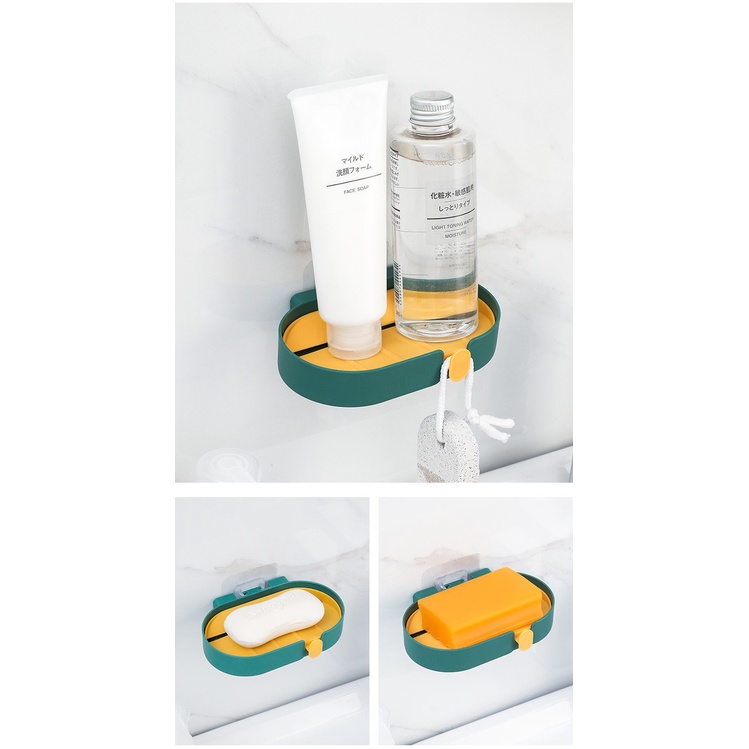 Nhà cửa & Đời sống > Đồ dùng phòng tắm > Kệ đựng xà phòng || Kệ đựng xà phòng 2 lớp dán tường có móc treo tiện lợi #T12-1Còn hàng