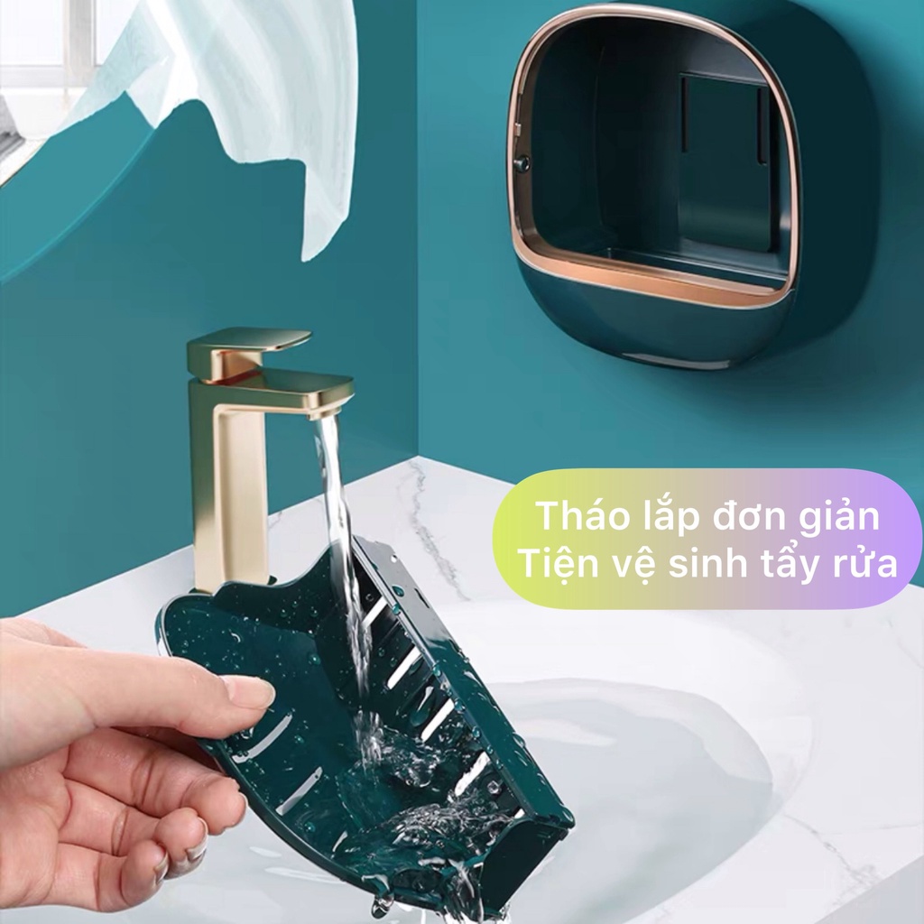 Kệ đựng xà phòng dán tường nhà tắm, để xà bông kèm khay hứng nước phong cách hiện đại