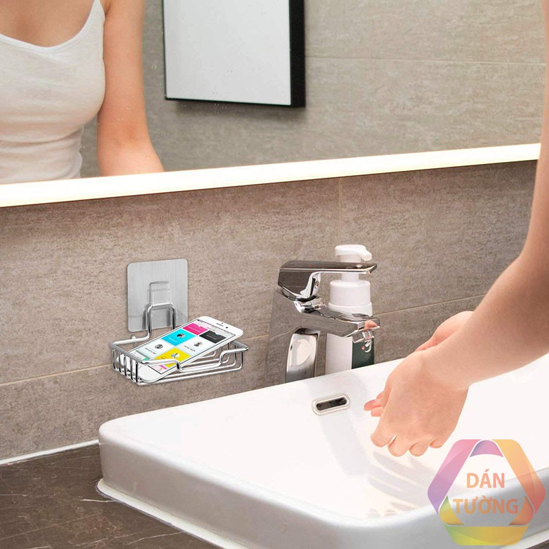 - Móc dán siêu chắc, giữ khay xà bông chắc chắn mà không cần khoan đục tường.