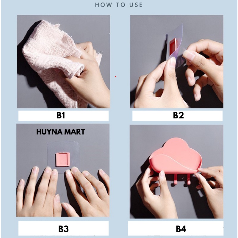 Giới thiệu Kệ Đựng Xà Phòng Hình Đám Mây Dán Tường Kèm Móc Treo Đồ Tiện Lợi Huyna Mart NT26
