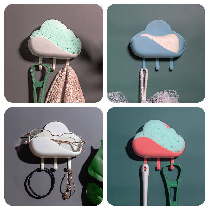 Kệ Đựng Xà Phòng Hình Đám Mây Dán Tường Kèm Móc Treo Đồ Tiện Lợi Huyna Mart NT26