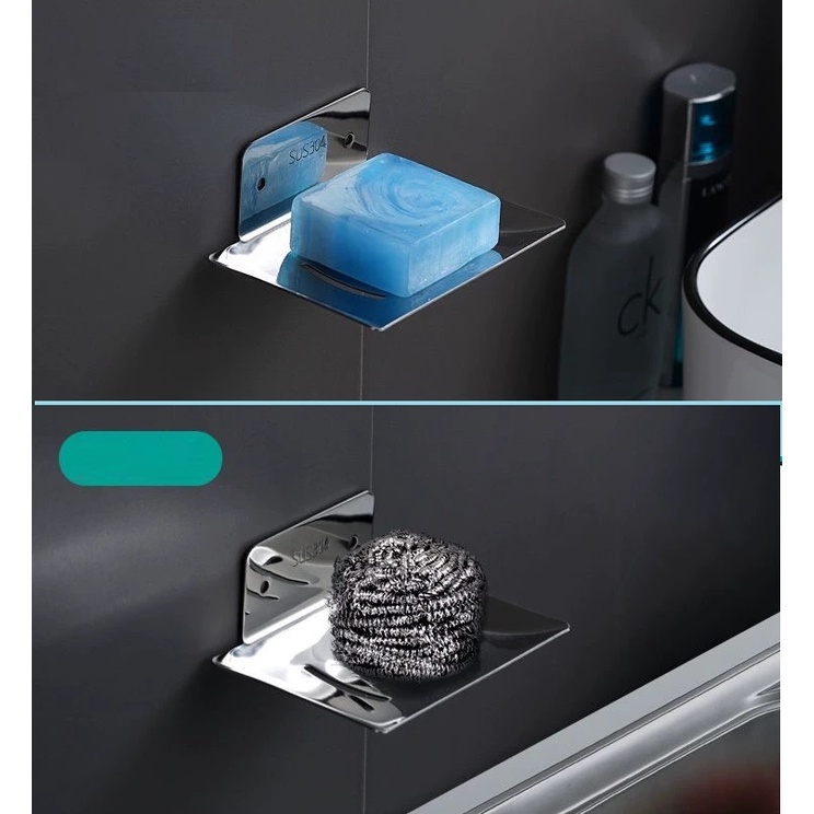 Kệ đựng xà phòng INOX SUS304 dán tường gạch men hoặc khoan vít nở - SU304