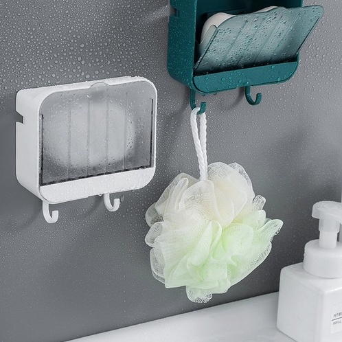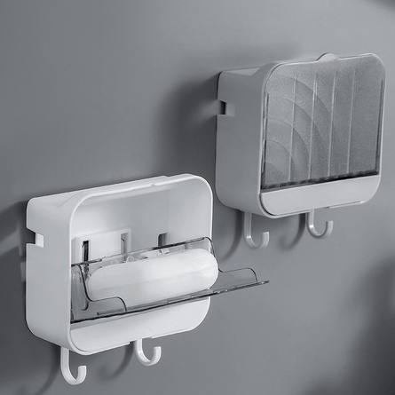 Nhà cửa & Đời sống > Đồ dùng phòng tắm > Kệ đựng xà phòng || Kệ Đựng Xà Phòng Nhà Tắm Có Nắp Thiết Kế Kiểu Hộp Đựng Xà Bông Có Khay Chứa Nước Chảy Xuống Kèm 2 Móc Treo Đồ Tiện LợiCòn hàng