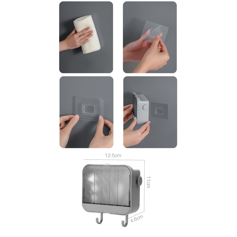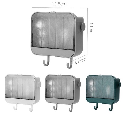 Giới thiệu Kệ Đựng Xà Phòng Nhà Tắm Có Nắp Thiết Kế Kiểu Hộp Đựng Xà Bông Có Khay Chứa Nước Chảy Xuống Kèm 2 Móc Treo Đồ Tiện Lợi