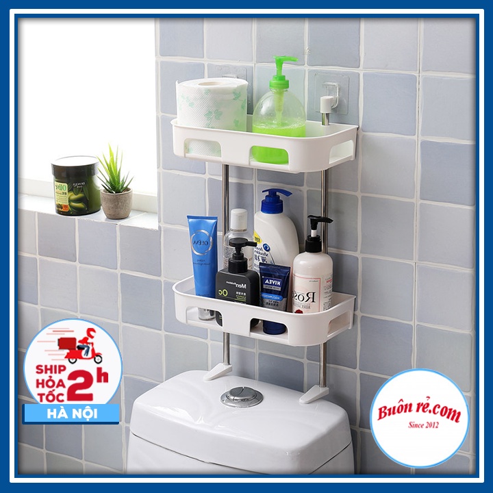 Diện tích nhà tắm nhà bạn hẹp, chắc hẳn bạn sẽ nghĩ đến tận dụng phần không gian phía trên toilet để đựng đồ đạc? Thực tế, phần không gian phía trên bồn chứa nước của toilet khá lớn và bạn hoàn toàn có thể đặt lên đó một chiếc kệ như hình để lưu trữ đồ đạc trong phòng tắm. Kệ bồn cầu nhà tắm giúp bạn sắp xếp lại không gian vệ sinh là nơi đựng các vật dụng như dầu gội, sữa tắm và các đồ dùng vệ sinh cá nhân vừa thuận tiện vừa sạch sẽ.Kệ gác bồn cầu lắp đặt dễ dàng, nhanh chóng và thay đổi vị trí dễ dàng