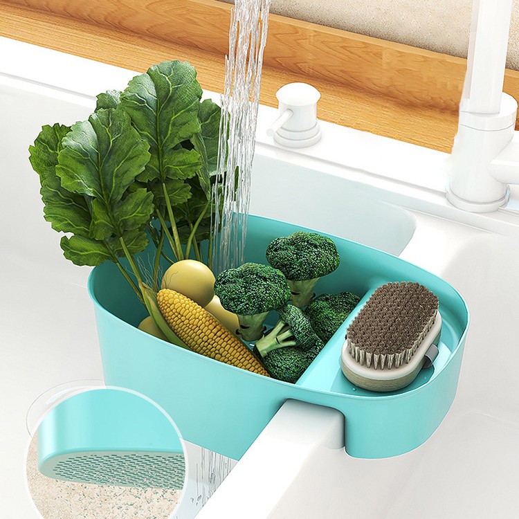 - Ngoài chức năng làm rổ đựng rau củ, rửa thịt cá, thì tác dụng chính của sp là dùng để làm khay lọc rác bồn rửa chén rổ lọc thức ăn thừa, giỏ lọc rác kèm kệ để đồ chùi xoong nồi dụng cụ nhà bếp tiện ích gọn gàng