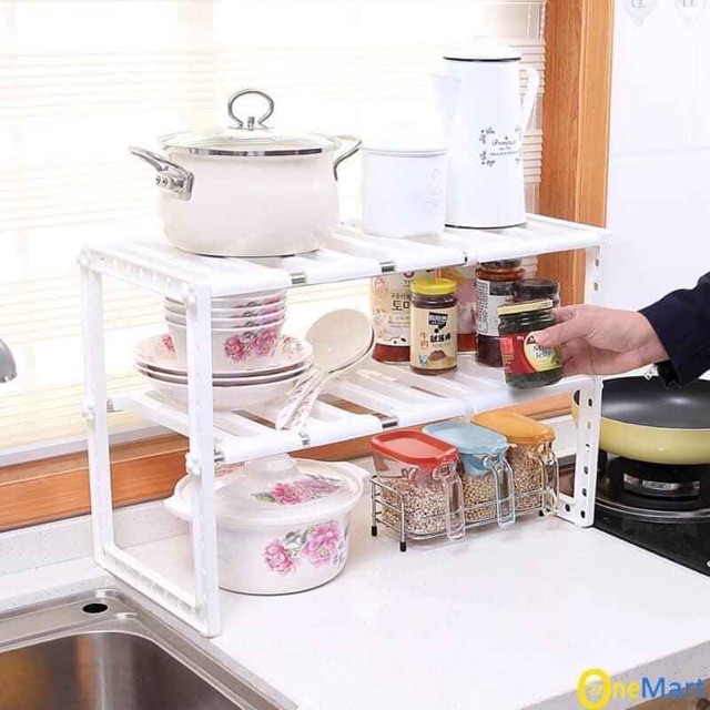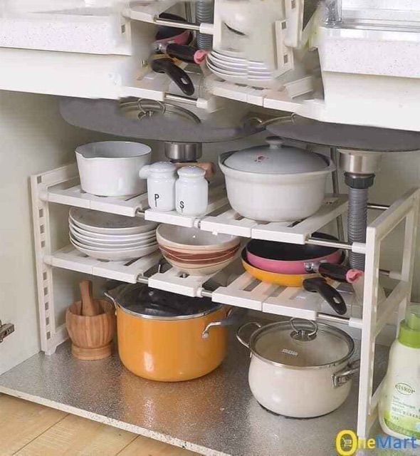 - Với thiết kế 2 tầng tiện lợi, kệ có thể tận dụng tối đa không gian chật hẹp của gầm bếp, gầm chạn để giúp bạn sắp xếp đồ đạc trông gọn gàng, đẹp mắt hơn