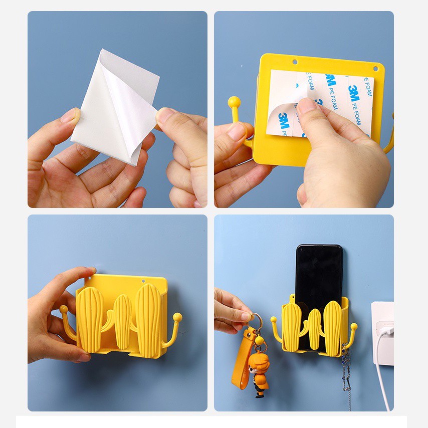 Kệ gắn tường để điện thoại khi sạc họa tiết xương rồng - Giá để điện thoại, điều khiển dán tường có móc treo tiện lợiĐẶC ĐIỂM NỔI BẬT: