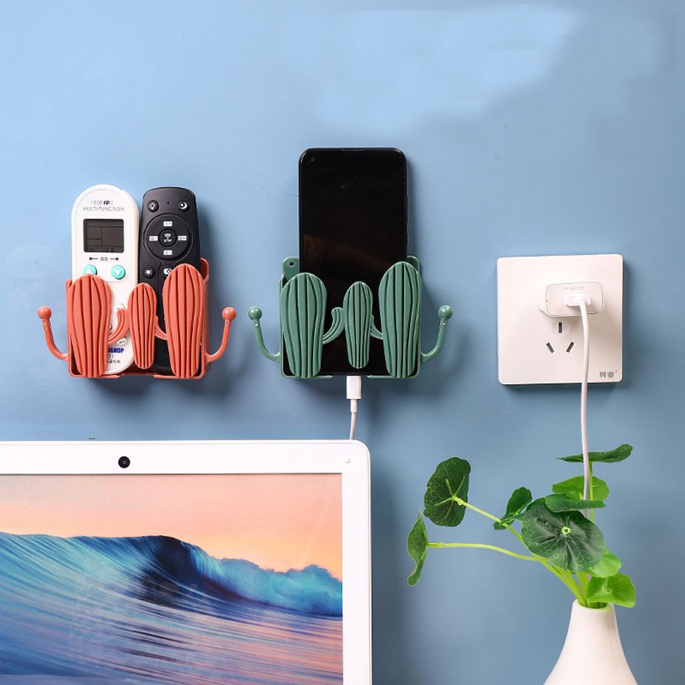 Kệ gắn tường để điện thoại khi sạc họa tiết xương rồng - Giá để điện thoại, điều khiển dán tường có móc treo tiện lợi