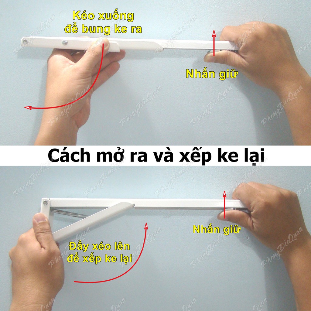 Ke gấp thông minh còn có nhiều tên gọi khác nhau như: ke gập, ke xếp, bản lề gập...+ Kích thước như hình.