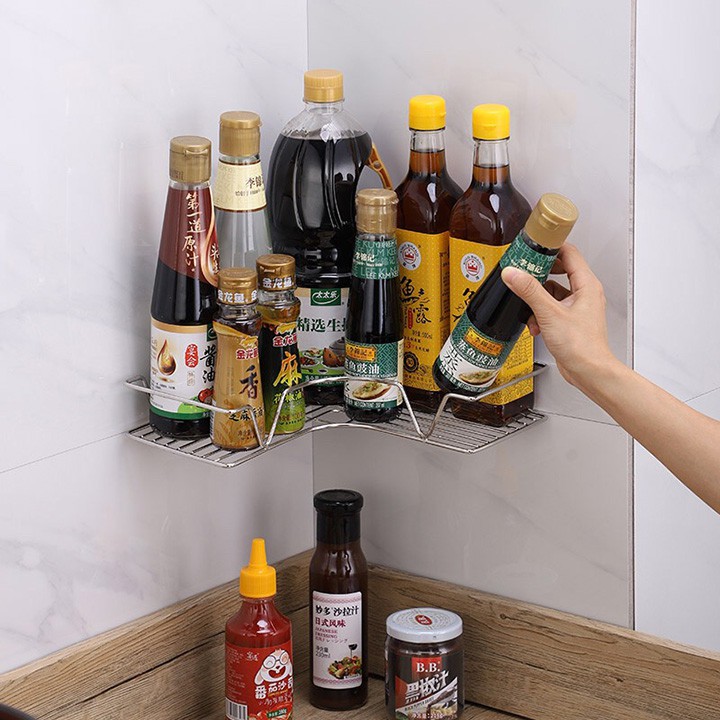 ☑️ Mục đích sử dụng: treo góc nhà tắm dùng chứa dầu gội hoặc các vật dụng trong nhà tắm, lắp đặt nơi nhà bếp để chai lọ gia vị