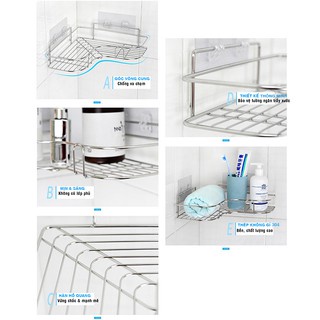 Kệ giá để góc bằng inox, khung để nhà tắm, nhà bếp, phòng khách không gỉ tặng kèm dán tường siêu dính HL4 meomeo