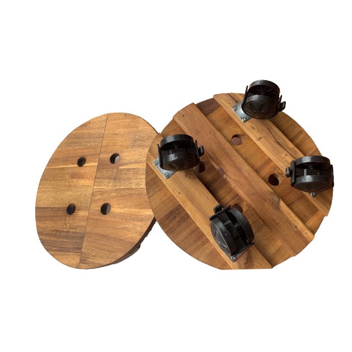 Đế chậu cây có bánh xe Tròn được làm bằng những thanh gỗ chất lượng cao, bền và chắc chắn, bánh xe đúc chịu được trọng lượng đến 80kg. Chịu nhiệt độ cao, chống tia cực tím, chống thấm nước, mạnh mẽ và bề.