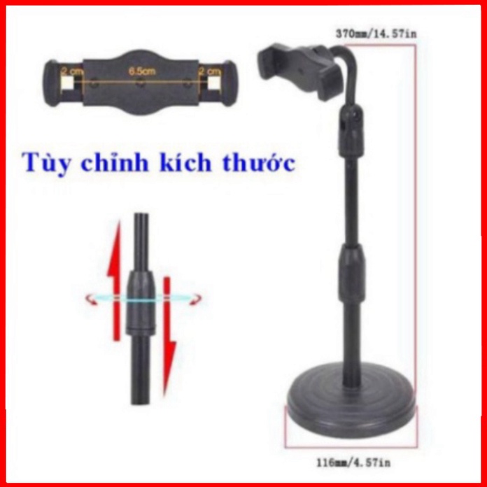 - Kích thước giá đỡ: co giãn linh hoạt từ 6,5cm đến 9,5cm
