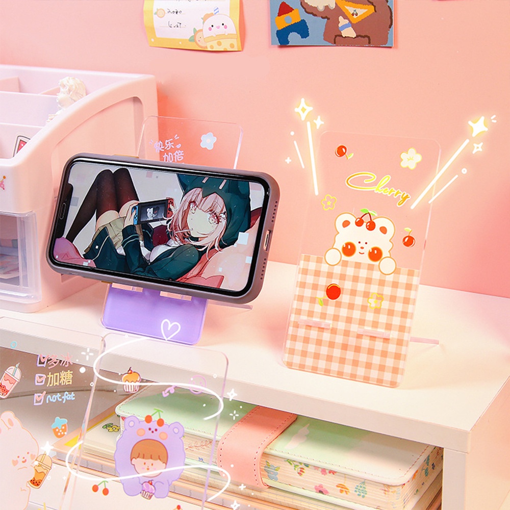 Kệ giá đỡ điện thoại ipad Béo shop bằng nhựa mica dán hình cô gái gấu thỏ rabbit vui nhộn dễ thương