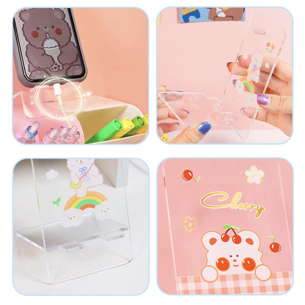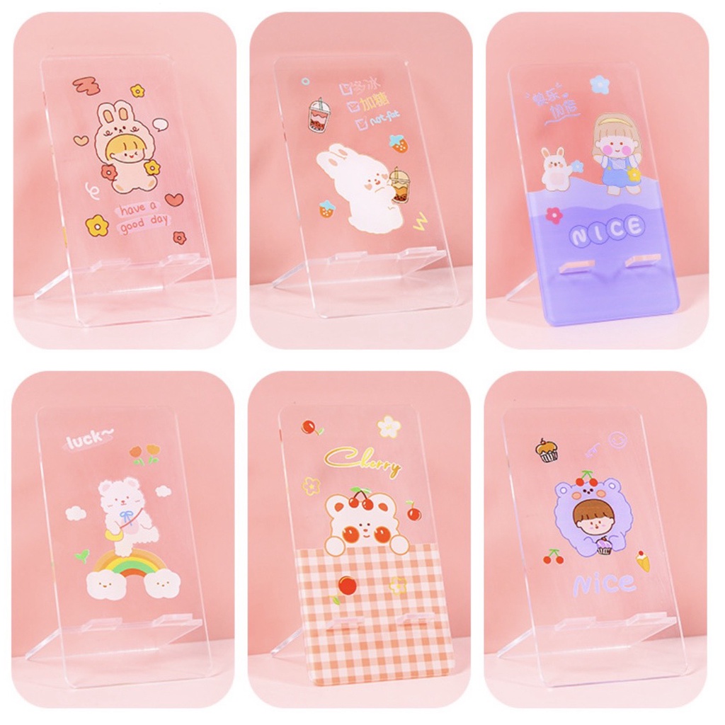 Điện Thoại & Phụ Kiện > Phụ kiện > Phụ kiện selfie > Giá đỡ || Kệ giá đỡ điện thoại ipad Béo shop bằng nhựa mica dán hình cô gái gấu thỏ rabbit vui nhộn dễ thươngCòn hàng