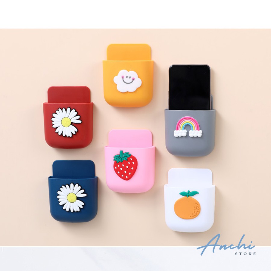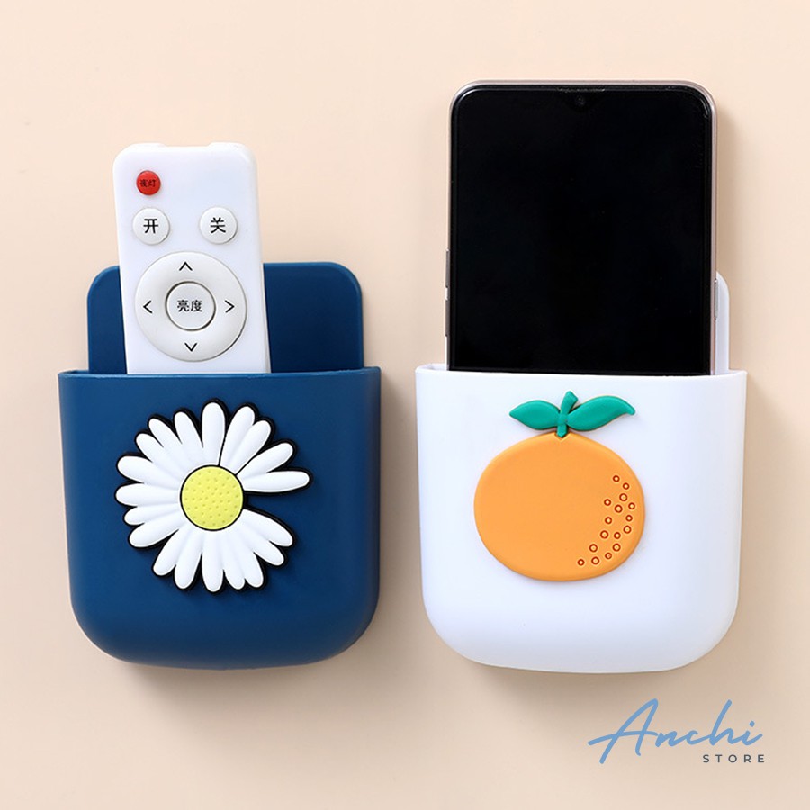 Kệ giá đỡ hoa dán tường để remote, đồ dùng cá nhân, Kệ giá đỡ hoa có lỗ cắm sạc điện thoại họa tiết dễ thương