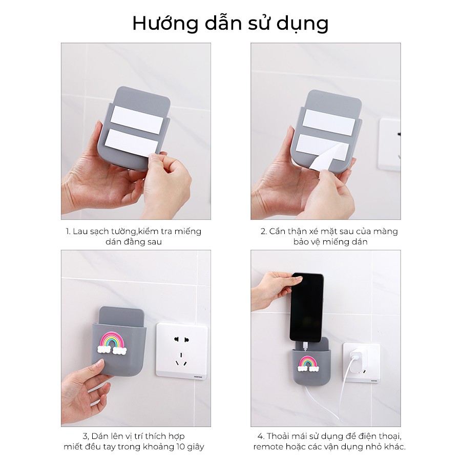 Thương chào các bạn đến với ShopduyhaTên sản phẩm: Kệ giá đỡ dán tường để remote, đồ dùng cá nhân, có lỗ cắm sạc điện thoại họa tiết dễ thương