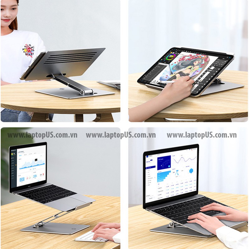 - Sản phẩm có chất liệu Nhôm nguyên khối, được gia công cắt CNC tinh tế, chắc chắn đảm bảo Macbook Laptop Tablet Ipad Surface Wacom cố định không bị rung lắc khi sử dụng
