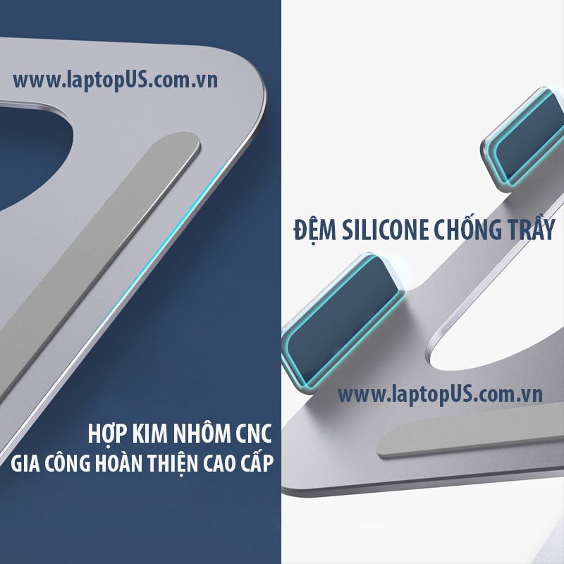 🔹 Sản phẩm có chất liệu nhôm nguyên khối, được gia công tinh tế, chắc chắn đảm bảo laptop, macbook cố định chắc chắn, không bị rung lắc.