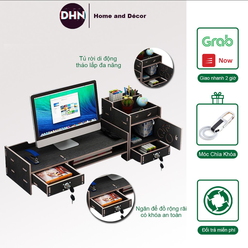Kích thước: Combo: 66 cm x 20 cm x 20 cmKệ máy tính - tài liệu: 47 cm x 20 cm x 13 cm