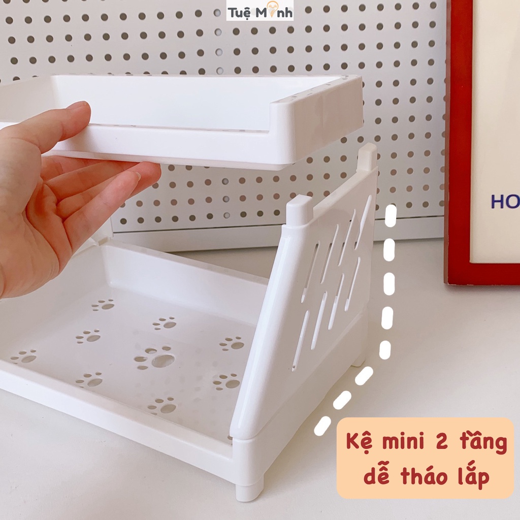 Kệ giá mini 2 tầng chân mèo để bàn cute decor văn phòng phẩm K38 tiện ích