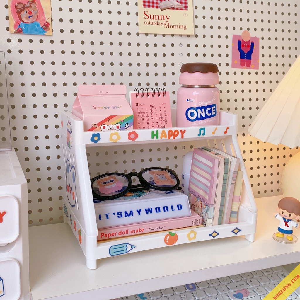 LƯU Ý: Sản phẩm kệ không bao gồm sticker dán trang trí.Kệ nhựa để bàn giúp góc học tập, làm việc của bạn ngăn nắp tiết kiệm diện tích, đồng thời giúp bạn có hứng khởi hơn trong công việc và học tập: