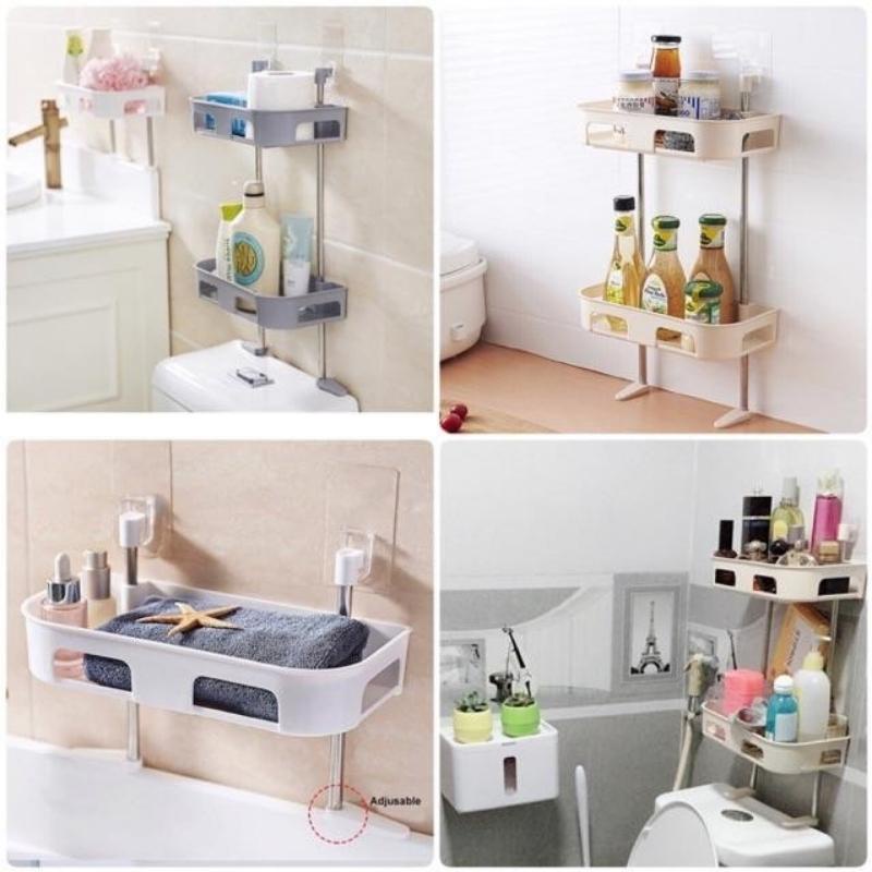 Giới thiệu Kệ Giá Nhựa Dán Treo Gắn Tường Để Đựng Đồ Xà Phòng Mỹ Phẩm Phòng Nhà Tắm Vệ Sinh Bếp Toilet Thông Minh Đa Năng 2 3 Tầng