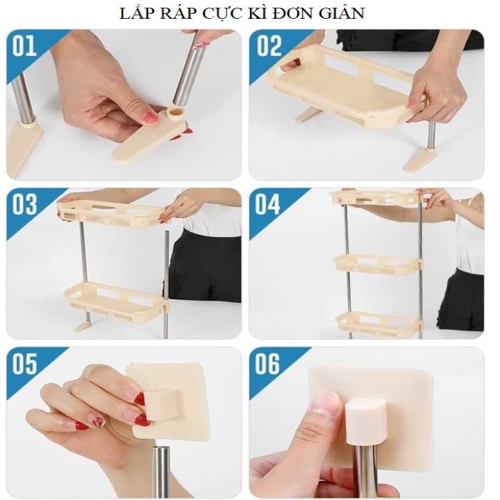 - Kệ lắp đặt dễ dàng bằng cách dính móc hút chân không lên tường hoặc dùng chân gác, không cần phải khoan tường bắt ốc nên lắp ráp nhanh chóng và thay đổi vị trí dễ dàng
